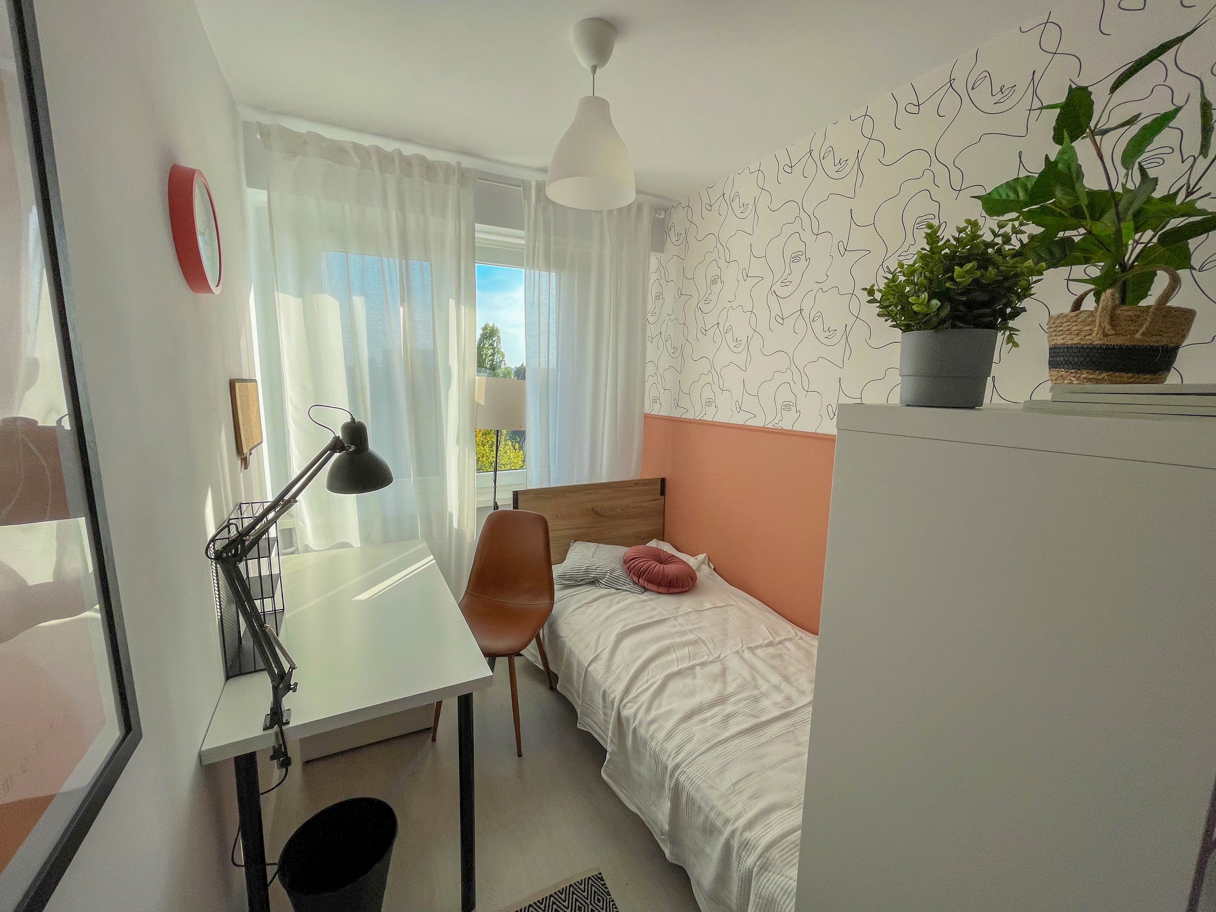 Są cztery, wszystkie jednoosbowe. Chcemy, żeby każdy czuł się w nich jak w domu, dlatego postawiliśmy na efektowny styl i uczciwy metraż (to nie jest typowa, studencka klitka 2x2m). Są też wygodne, nowe łóżka, porządne, duże biurka dla studenta, a nie przedszkolaka i trochę przestrzeni do odpoczynku.