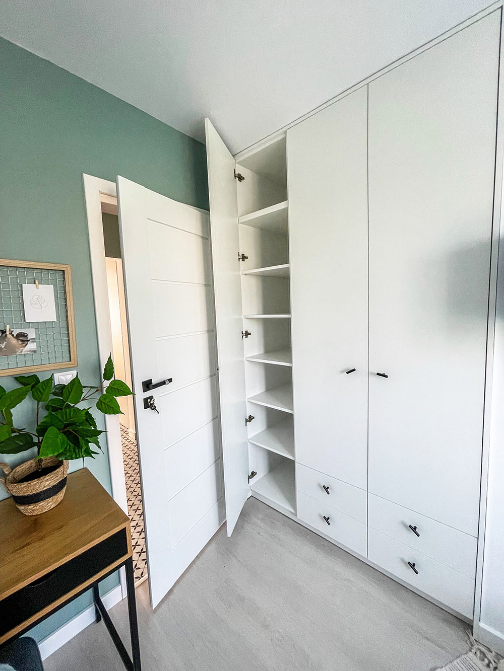 W jednym pokoju wielka szafa, w drugim mała szafka, albo jej brak - to bolączka wielu mieszkań. W naszej stancji zaprojektowaliśmy dużo szaf i szafek w pokojach, częściach wspólnych oraz przede wszystkim: dużo szafek w łazience. W kuchni miejsca też jest aż nadto!